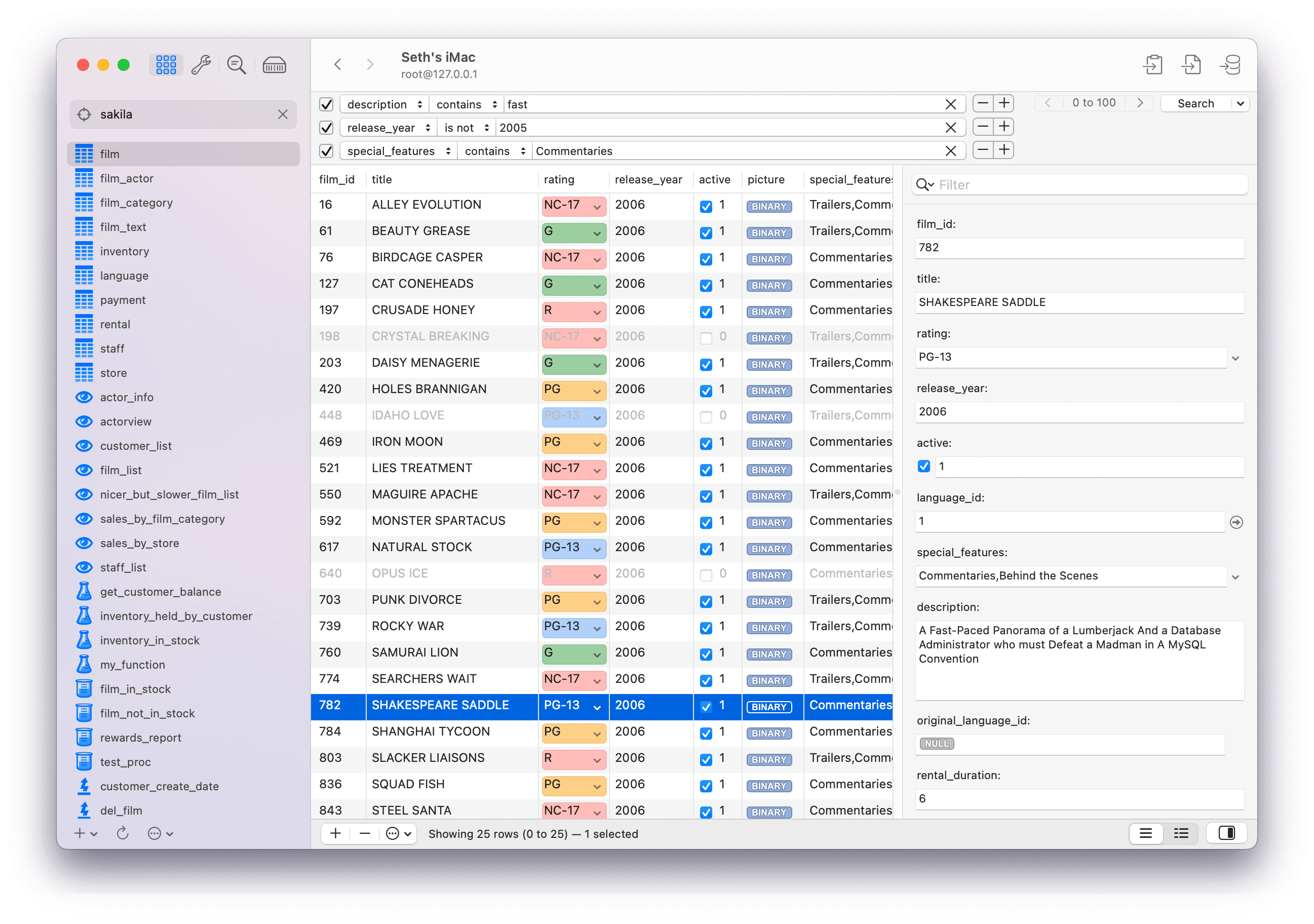 Querious’s powerful performance enables extremely fast data processing, and at the same time, it has advanced functions such as user management, table relationship visualization, and database structure comparison, providing users with a one-stop database solution.